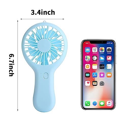 Mini- Handventilator, Akku, tragbarer Ventilator, verstellbar, USB, wiederaufladbar, 3 Geschwindigkeiten, persönlicher kleiner Schreibtischventilator mit Sockel für Mädchen, Büro, Zuhause (blau)