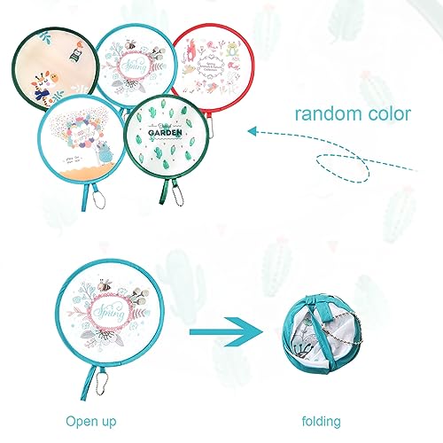 MIVAIUN 6 Stück Faltbare Runde Handfächer: Traditionelles Design trifft auf praktischen Alltagskomfort. Dieses Set enthält sechs runde Fächer mit einem Durchmesser von 21 cm, die nach dem Falten in der Mitte auf ca. 7 cm gerollt werden. Das Hauptmaterial ist Polyester, wodurch die Fächer stabil verarbeitet sind, nicht leicht brechen und farbecht bleiben. Durch eine praktische Aufhängeöse lassen sich die Fächer direkt an Taschen, Schlüsselanhängern oder anderen Utensilien befestigen. Das zufällige Farbsortiment sorgt für liebevolle Akzente auf Hochzeiten, Partys oder als dekoratives Element in Zeremonien. Dank der kompakten Größe und des geringen Gewichts eignen sich die Fächer hervorragend zum Tragen, Teilen oder Verschenken – ideal als Hochzeitsgeschenk, Belohnung im Unterricht oder kleine Aufmerksamkeit für besondere Anlässe. Die runden Faltfächer verbinden stilvolle Optik mit nützlichem Komfort und verleihen jedem Anlass eine elegante, kühle Note.