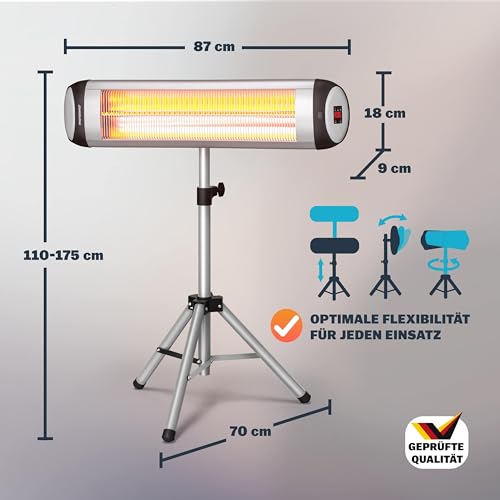 Monzana Infrarot Heizstrahler MZH2501 2500W 3 Stufen Timer Fernbedienung Wärmestrahler Terrassenstrahler Elektrisch
