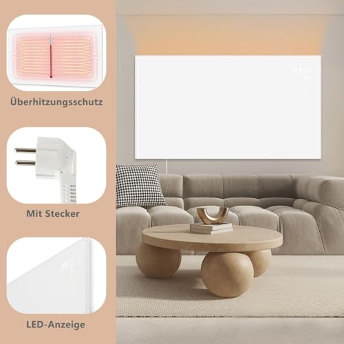 Mursche Infrarot Wandheizung Infrarotheizung mit Thermostat- 600W Elektrisch Heizung Standgerät mit Fernbedienung Elektroheizung Energiesparend Elektroheizkörper Wandmontage mit APP WiFi