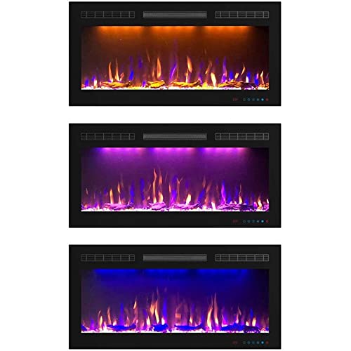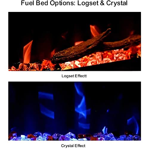 Mystflame Crystal 40- Elektrischer Wandkamin, 3 Farben von Holz und Flammen, 750/ 1500 W, Kamin an der Wand mit Komfortable Heizung, Touchscreen, Fernbedienung, Timer