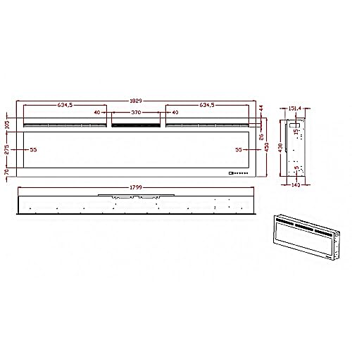 Mystflame Crystal 72 Pro mit WiFi- Elektrokamin für die Wand, 183 cm, 3 Farben von Holz und Flammen, Elektrokamin mit Thermostat 750/ 1500W, komfortable Heizung, Touchscreen, Timer
