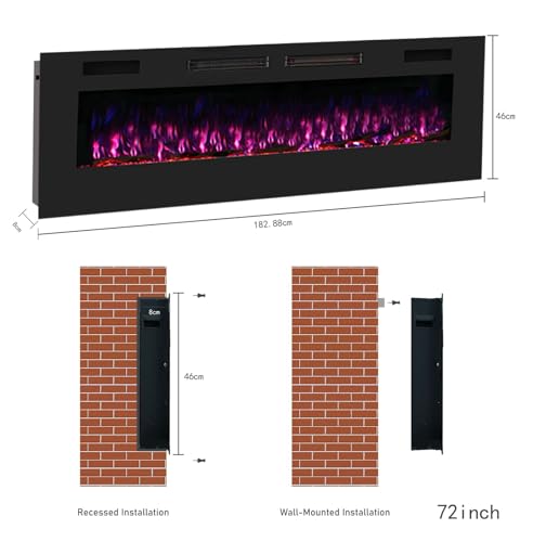 Mystflame Crystal- Elektrischer Wandkamin, 3 Farben von Holzscheiten und Flammen, 750/ 1500 W Thermostat, komfortable Heizung, Touchscreen, Fernbedienung, Timer, Verschiedene Größen