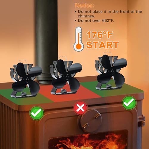 OMANSHY Ofenventilator, Kaminventilator, Holzofenventilator, Wärmebetriebener Ventilator 4 Flügel für Holz, Holzscheitöfen