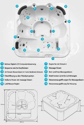 Outdoor Whirlpool Hot Tub Venedig Farbe weiß mit 44 Massage Düsen + Heizung + Ozon Desinfektion + LED Beleuchtung für 5- 6 Personen für Garten/ Terrasse/ Außen