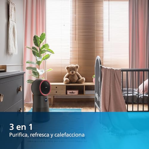3-in-1-Luftreiniger von Philips: Reinigt, erwärmt und belüftet Räume bis 42 m². Dreilagiger Filter entfernt Feinstaub, Bakterien, Allergene und Gerüche. Sleep-Modus für ruhigen Betrieb im Schlafzimmer.