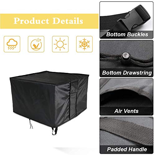 POMER Abdeckung für Gas- Feuerstelle, quadratisch, 80 x 80 x 32 cm, wasserdicht und UV- beständig, für den Außenbereich, mit strapazierfähigem Oxford- Gewebe für Terrassen- Feuerstelle, Tisch