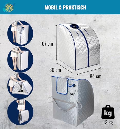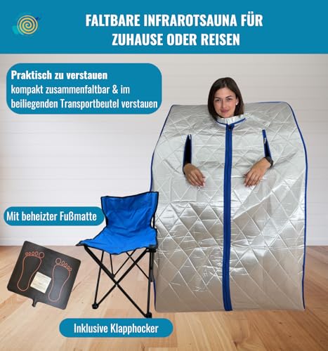 Portable Infrarotsauna XL Deluxe mit Klapphocker | Faltbare Heimsauna für 1 Person | Mobile Infrarot- Wärmekabine 1000W | Wellness Sauna Zelt für Zuhause | CHI- Enterprise