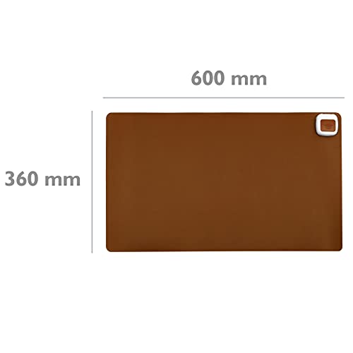 Thermomatte mit integrierter Heizung in Braun, 600 x 360 mm, 65 W. Drei Leistungsstufen, direkter Netzanschluss an 220 V, maximale Temperatur 40–45 °C. Ideal als Schreibtischmatte oder Fußwärmer.