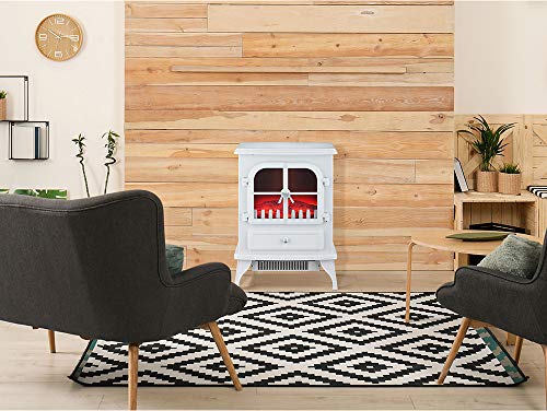 Kompakter, weißer Elektrischer Kaminbodenofen mit 2000 W Leistung. Authentische Flammenoptik, einfache Bedienung und flexible Einsatzmöglichkeiten in Wohnräumen.