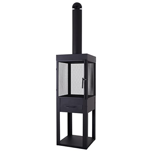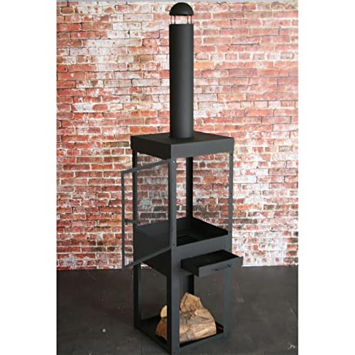 Raburg XXL Gartenkamin BALDUR in Schiefer- SCHWARZ, pulverbeschichteter Stahl, großer Design- Garten- & Terrassenofen, 201 cm hoch, hochwertige Verarbeitung, mit Holzfach für Feuerholz