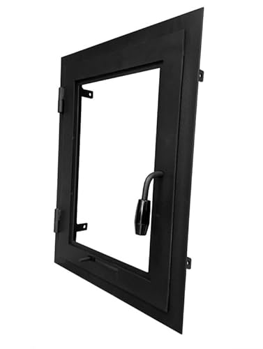 Räuchertür 40 x 80 cm, einflügelig, großes Glas, Kamintür mit Glas für Pizzaofen, Gusseisen, Öffnungsrichtung: links | Griff ist rechts