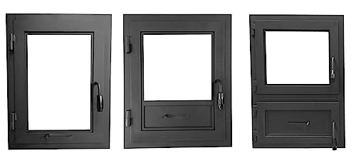 Räuchertür 50 x 80 cm, einflügelig, großes Glas, Kamintür mit Glas für Pizzaofen, Gusseisen, Öffnungsrichtung: links | Griff ist rechts