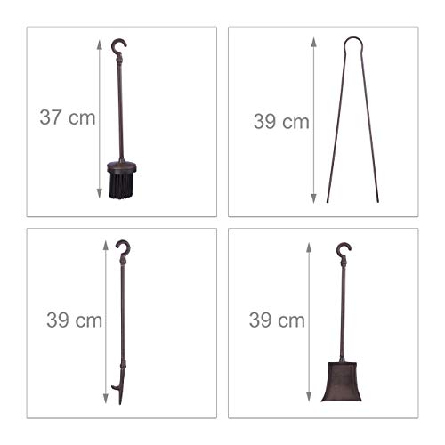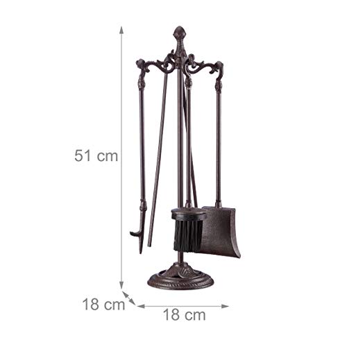 Relaxdays 10022938 Kaminbesteckset Gusseisen, Braun, 51 x 18 x 18 cm