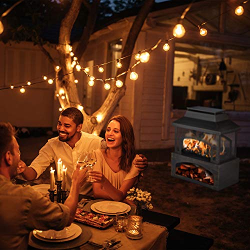 Gartenkamin aus Stahl mit dreiseitigem Funkenschutz, integriertem Brennholz-Stauraum, Schürhaken und Feuerrost. Außenkamin für Garten und Terrasse, Maße ca. 98 x 82 x 45 cm, schwarz.