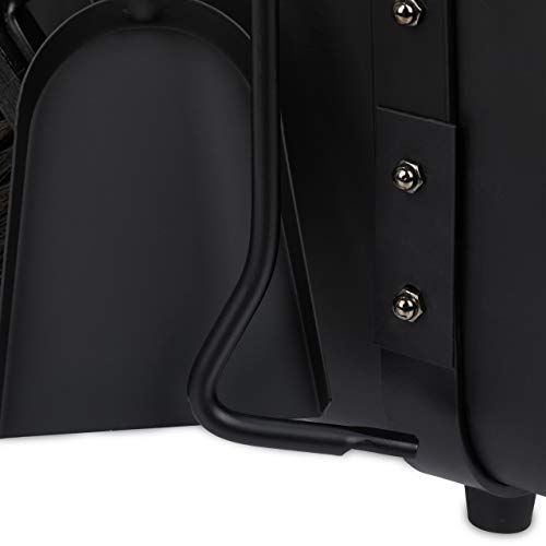 Relaxdays Kaminholzkorb Metall, mit 4 TLG. Kaminbesteck, Schaufel, Besen, Zange & Schürhaken, für innen, modern, schwarz, 1 Stück