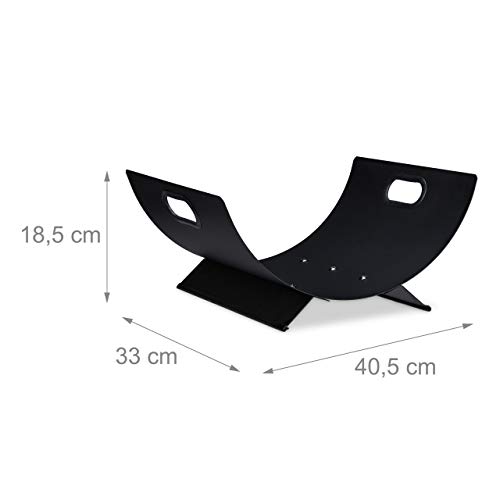 Relaxdays Kaminholzkorb Metall, modern, Kaminholz Aufbewahrung innen, HBT: 18, 5 x 40, 5 x 33 cm, groß, Holzlege, schwarz