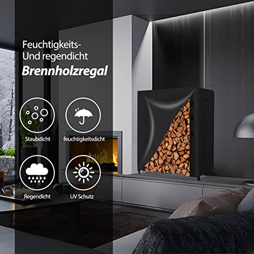 SANHENG Kaminholzregal, Metall Brennholzregal Feuerholzregal mit wasserdichter Abdeckung, Innen und Aussen, schwarz (122x36x122cm)