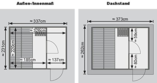 Die Sauna für den Außenbereich Rauma 2 mit Vorraum bietet eine robuste Außenlösung für Entspannung direkt im eigenen Garten. Mit den Maßen 337 cm x 231 cm x 239 cm schafft der Aufbau ausreichend Platz für mehr Bewegungsfreiheit und gemeinsames Schwitzen in gemütlicher Atmosphäre. Der integrierte Vorraum erweitert den Nutzungsbereich um einen praxisnahen Zugangs- und Umkleidebereich, der den Innenraum angenehm entlastet. Gefertigt für den Outdoor-Einsatz überzeugt das Modell durch wetterfeste Bauweise und langlebige Materialien, die eine zuverlässige Nutzung über viele Jahreszeiten hinweg unterstützen. Die Rauma 2 Sauna eignet sich ideal für Familien, Paare und Alleinnutzer, die Wert auf eine komfortable Saunazeit im Freien legen und dabei den Kontakt zur Natur schätzen. Einsatzbereiche reichen vom gemütlichen Warm-Up nach dem Sport bis hin zum entspannenden Wellness-Erlebnis am Feierabend. Die großzügige Innenaufteilung fördert eine entspannte Sitz- und Aufheizzone, während der Vorraum zusätzlichen Stauraum für Handtücher, Saunautensilien und Bademäntel bietet. Die Installation erfolgt gemäß den hiesigen Nutzungsanforderungen für Gartensaunen, sodass der Aufbau sicher und effizient gelingt. Dieses Modell vereint Funktionalität, Komfort und Outdoor-Charme in einer sauberen, klar strukturierten Gesamtlösung für anspruchsvolle Outdoor-Wanscher.