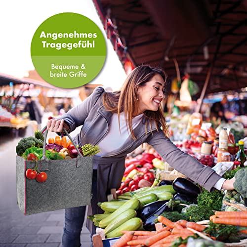 Shopping- Bag aus Filz, große verschließbare Einkaufs- Tasche mit Henkel, Einkaufskorb, faltbare Kaminholztasche zur Aufbewahrung von Holz, vielseitige Tragetasche, Farbe grau/ magenta