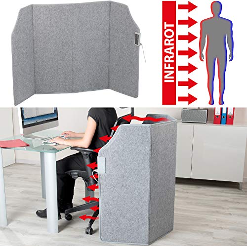 Fern-IR-Wärme für Tiefenkomfort: Einfache Beheizung von Füßen und Beinen im Büro oder zuhause. Drei Wärmestufen bis 65 °C, automatische Sicherheitsabschaltung, Gewicht 4,5 kg, aufgeklappt ca. 156,5 x 96 cm.