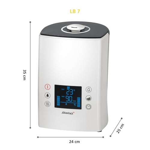 Steba Luftbefeuchter LB 7 | Ultraschallvernebelung min. 250 ml/ h bis max. 400 ml/ h | Ionisation zuschaltbar | Luftfeuchtigkeitsregelung 45% bis 90% | 3 Geschwindigkeitsstufen | Ökostufe 30 W | 5 Liter