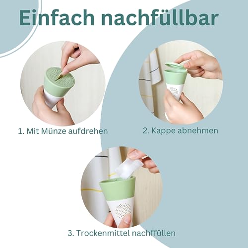 Stilvoller Luftentfeuchter im praktischen 3er Set: Effektiver Schutz vor Feuchtigkeit, Schimmelbildung und unangenehmer Feuchtigkeit in Wohnräumen, Kellern, Badezimmern und Fahrzeugen – ganz ohne Stromverbrauch. Die Granulate arbeiten ohne Energie und bieten langfristigen Schutz für trockene, gesunde Räume. Das moderne Design macht den Entfeuchter zu einem stilvollen Begleiter, der sich flexibel überall aufhängen lässt und so gezielt Feuchtigkeit reduziert. Ideal für Keller, Badezimmer oder Kleiderschränke – investieren Sie in eine nachhaltige Lösung, die dauerhaft Feuchtigkeit binden und Schimmel vorbeugen kann.