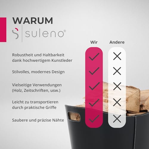 SULENO Holzkorb WEXFORD Brennholzkorb Kunstleder schwarz (L- 31, 5 x 39, 5 x 38 cm)