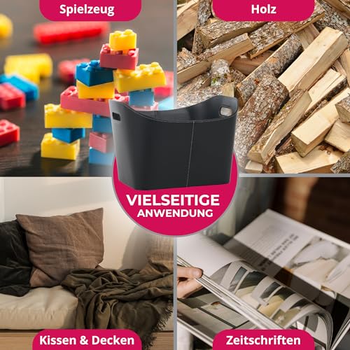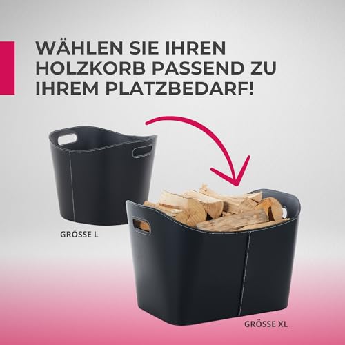 SULENO Holzkorb WEXFORD Brennholzkorb Kunstleder schwarz (XL- 35, 5 x 55, 0 x 42, 5 cm)