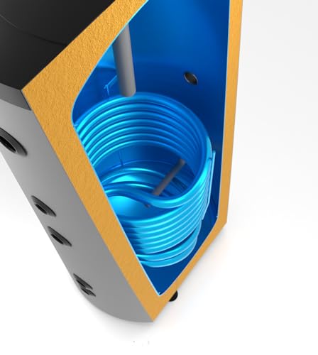 SUNEX 200L Warmwasserspeicher mit 1 Wärmetauscher, effizient gedämmt, bis 95°CBetriebstemperatur, 10 bar. Flexible Anschlüsse, kompakte Bauweise. Ideal für Öl, Gas, Festbrennstoff oder Wärmepumpen.