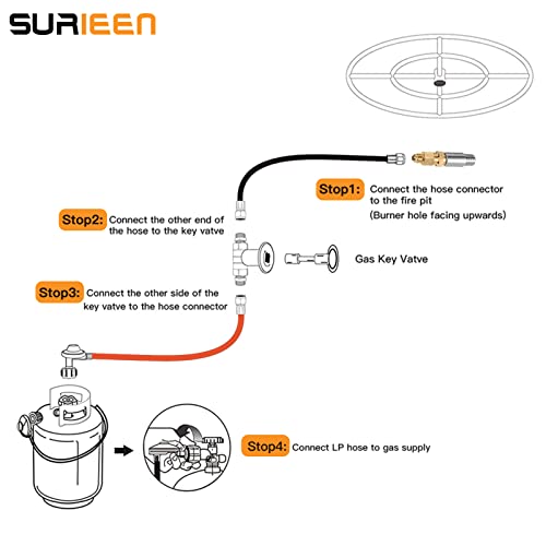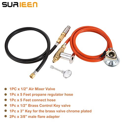 SURIEEN Feuerstelle Gas Kit 150K BTU Gasregler Propangasventil Steuersystem Schlauch Montage Ersatz für Propangasanschluss mit 1/ 2 Zoll Luftmischventil Reglerschlauch und Verbindungsschlauch