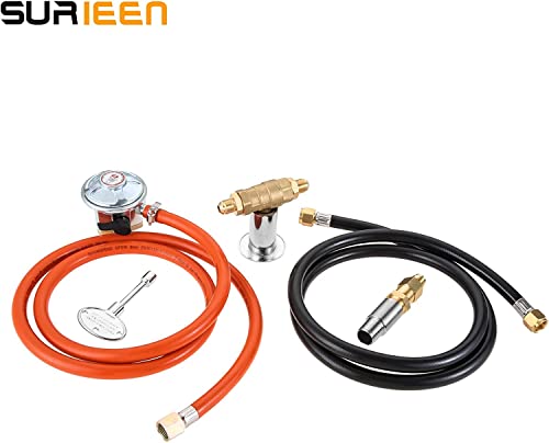 SURIEEN Feuerstelle Gas Kit 90K BTU Gasregler Propangasventil Steuersystem Schlauch Montage Ersatz für Propangasanschluss mit 1/ 2 Zoll Luftmischventil Reglerschlauch und Verbindungsschlauch