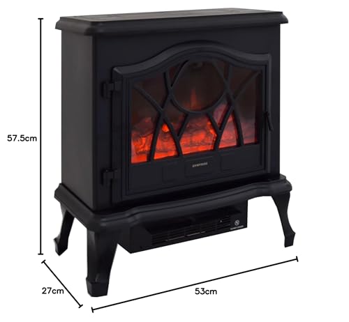 Der freistehende Elektrokamin Umbala von Syntrox Germany sorgt für eine beeindruckende Kamin-Atmosphäre ohne Ruß oder Funkenflug. Mit zwei Heizstufen bietet er individuelle Wärme für gemütliche Stunden im Wohnzimmer. Die LED-Hintergrundbeleuchtung schafft eine stimmungsvolle Beleuchtung, die den Kamin zu einem eleganten Blickfang macht. Steuerung ganz bequem per Fernbedienung, sodass Sie Wärme und Ambiente komfortabel aus dem Sitz heraus regulieren können. Das moderne, schwarze Design fügt sich harmonisch in verschiedene Wohnstile ein und eignet sich ideal als Dekokamin sowie als Heizquelle in einem frei stehenden Setup.