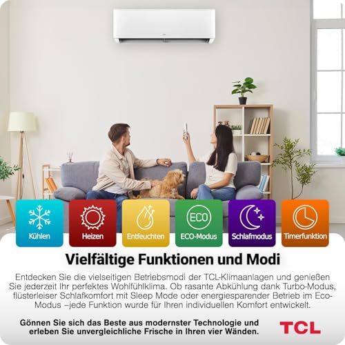 TCL BreezeIn Split Klimaanlage 12000 BTU (3, 4 kW)- Quick Connect Set (5m)- R32 Vorbefüllt- Heizen & Kühlen- App & Alexa Steuerung