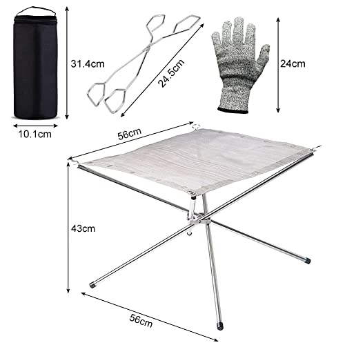 Toulifly Tragbare Feuerschalen, Camping Faltbare Edelstahl Feuerkorb, Rostfreier Stahl Mesh Kamin, Outdoor Firepit für Draußen, Patio, Camping, Grill, Garten (M)