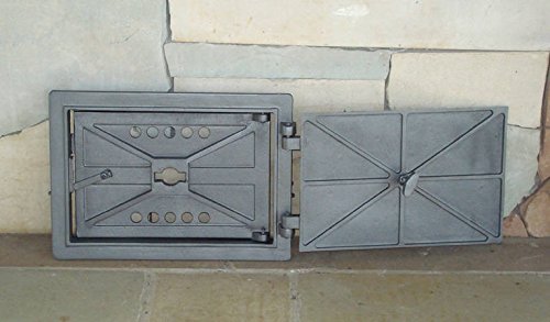 Tradehub Aschetür Revisionstür Kachelofentür Ofentür Backofentür Pizzaofentür Holzbackofentür Steinbackofentür aus Gusseisen mit Hitzeschild | Außenmaße: 415×297 mm | Öffnungsrichtung: rechts