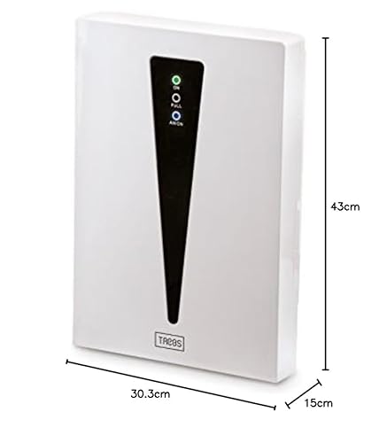 Entfeuchtet Räume bis 100 m³ zuverlässig. Kapazität 500–750 ml/24 h, 85 W, Reservoir 1.500 ml. Integriertes Ionisierungsmodul reduziert Staubpartikel in der Luft.