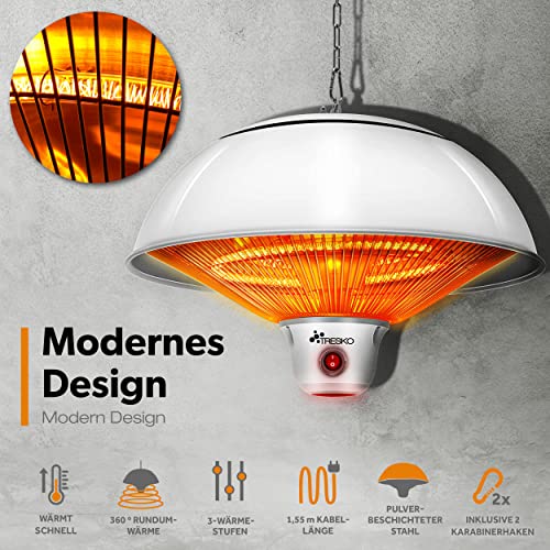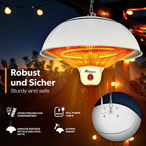 TRESKO Deckenheizstrahler 1500W mit Fernbedienung | Heizstrahler Wärmestrahler mit 3 Heizstufen | Terrassenstrahler Heizpilz Infrarot Innen & Außen | Infrarotstrahler Zeltheizer Decke Terrasse