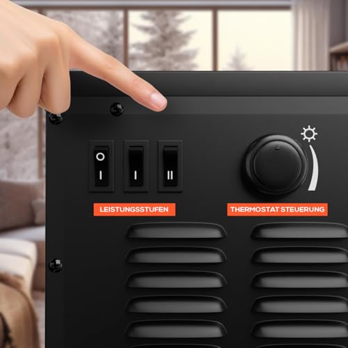 Der TroniTechnik Elektrokamin elektrisch bietet warme Wohnatmosphäre ohne Rauch oder Brennholz. Mit einem kompakten Gehäuse von ca. 45 x 32 x 74 cm passt dieses frei stehende Modell flexibel in verschiedene Wohnbereiche. Das Panorama-Sichtfenster setzt den flammenden LED-Effekt wirkungsvoll in Szene und verleiht dem Raum eine zeitlos elegante Note. Die Heizung verfügt über zwei manuelle Thermostatstufen (1 kW bzw. 2 kW) und eine integrierte Ventilation, die die Wärme gleichmäßig im Raum verteilt. Der Flammeneffekt kann separat ein- oder ausgeschaltet werden, sodass auch ohne Heizung eine gemütliche Stimmung entsteht. Die polierte Metall-Oberfläche sorgt für eine hochwertige Optik und einfache Reinigung. Da keinerlei Installation oder Schornstein nötig ist, lässt sich der Kamin sofort nach dem Auspacken nutzen – einfach einstecken, einschalten und behagliche Wärme genießen. Ideal für Wohnungen, Häuser oder moderne Lofts, bietet dieses Modell komfortables Heizen mit ästhetischem Anspruch und energieeffizienter Technik.