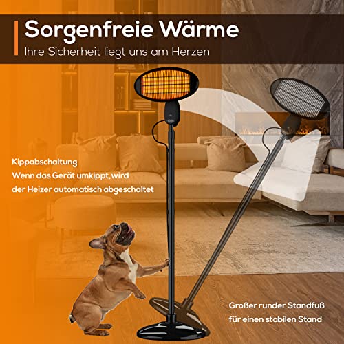 Tronitechnik Infrarot Heizstrahler 2000 Watt Standheizer Terrassenheizer Terrassenstrahler Wärmestrahler für die Terrasse, Wickeltisch- Strahler, schwarz, Innen & Außen, höhenverstellbar, neigbar
