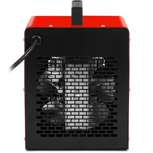 Robustes, mobiles Heizgerät mit zwei Leistungsstufen (1,5 kW / 3 kW), PTC-Keramik-Heizelement, Thermostat und leisem Axialgebläse für gleichmäßige Warmluft in Werkstatt und Baucontainer.