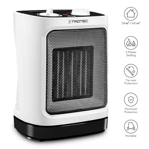 TROTEC Keramik Heizlüfter TFC 17 E- Heizleistung 1200 W/ 2000 W- Elektroheizung mit Thermostat, Raumgröße 24 m² bis 60 m³, Oszillationsfunktion 60°