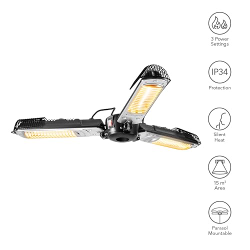 Trotec Umbrella IR 2005 SC – kompakter Elektroheizkörper mit effiziente Infrarottechnologie, silber/schwarz, ideal für gezielte Raumheizung.