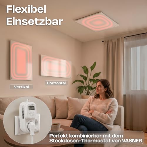 VASNER Citara M Infrarotheizung- Infrarot Elektroheizung Metall weiß Wandheizung Deckenheizung IP44 Schutz Bad Heizpaneel Innenbereich 10 J. Garantie (1100 Watt)