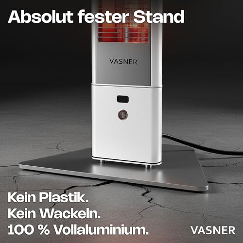 Der VASNER HeatTower ist ein leistungsstarker Infrarot-Standheizstrahler mit 825 bis 2500 Watt. Er spendet wohltuende Wärme im Außenbereich – ideal als Terrassenheizer, Außenheizung oder Balkonheizer. Der Heizstrahler arbeitet elektrisch und ersetzt herkömmliche Gas-Heizpilze dank moderner Infrarottechnik. Er kommt mit einer praktischen Fernbedienung, die eine einfache Steuerung der vier Heizstufen ermöglicht. Der Standkörper besteht aus hochwertigem Vollaluminium und bietet festen Halt, auch bei widrigen Wetterbedingungen. Dank IP65-Strahlwasserschutz ist der Heizer wetterfest und für den dauerhaften Einsatz im Freien geeignet, selbst bei Regen und Wind. Einsatzbereiche umfassen Terrasse, Garten, Balkon oder Patio – wo zuverlässige Wärme benötigt wird. Der HeatTower ist kompatibel mit verschiedenen Outdoor-Heizkonzepten und überzeugt durch sofortige Wärmeabgabe, kompakte Bauweise und robuste Verarbeitung.
