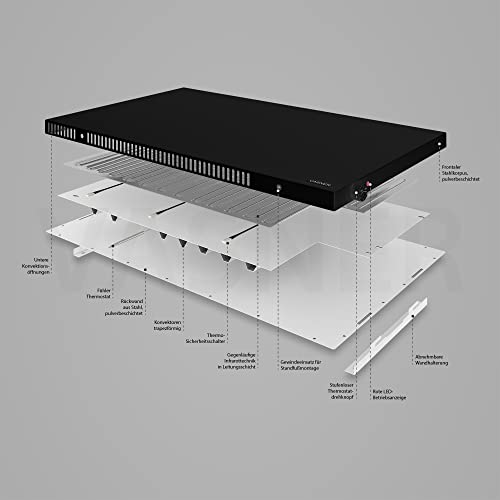 VASNER Konvi Schwarz Hybrid Infrarotheizung- Hybridheizung mit Thermostat, 600- 1200 Watt, Heizung elektrisch Infrarot + Konvektion, energiesparend, Wandmontage, 3 J. Garantie