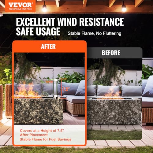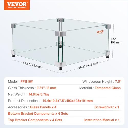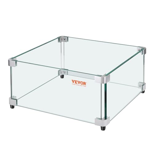 VEVOR Gas- Feuerstellen- Windschutz für quadratischen Feuertisch, 493 x 493 x 191 mm, durchsichtiger, gehärteter Windschutz für Feuerstellen, 8 mm dicker quadratischer Glasschutz, Glasscheibe mit harter