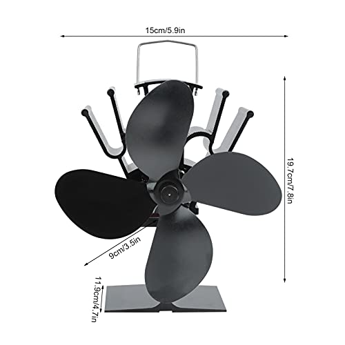 Wakects Kamin- Ventilator mit 4 Flügeln, Heizlüfter, Heizlüfter, ohne Strom, mit Anleitung (evtl. nicht in deutscher Sprache)