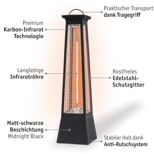 WALTER Professional Infrarot Standheizstrahler 2000 W, hochwertige Carbon- Infrarot Technologie, besonders schnell aufgeheizt, geräuschlos, Innen und Außen einsetzbar, Standheizung, perfekte Rundwärme