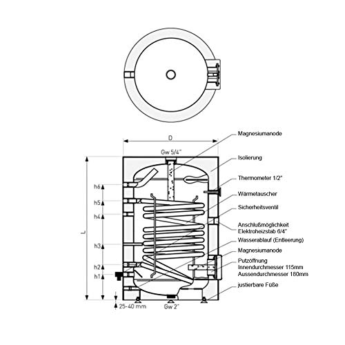 Der Warmwasserspeicher mit 200 Liter Fassungsvermögen bietet zuverlässige Warmwasserversorgung für Haushalte. Ausgestattet mit einem einen Wärmetauscher erfüllt er typische Anforderungen an die zentrale Warmwasserversorgung in Wohn- und Hausinstallationen. Der Speichertank sorgt für stabile Warmwassertemperaturen und ermöglicht eine gezielte Nutzung, wenn Warmwasser benötigt wird. Er eignet sich für den Einsatz in Kombination mit gängigen Heizungs- oder Heizkühlkreisläufen und lässt sich in passende Warmwassersysteme integrieren. Der Speicher unterstützt eine unkomplizierte Anbindung an vorhandene Systeme und trägt so zu einer effizienten Warmwasserbereitstellung bei.